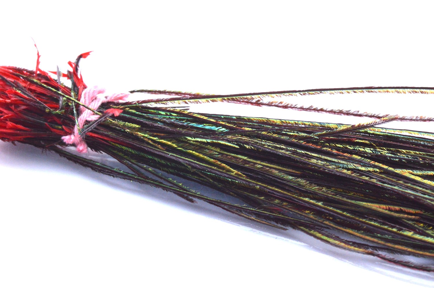 PENNA DI PAVONE Certamente uno dei “top ten” per quello che riguarda il nostro tavolo da costruzione. Poliedrico e incredibilmente efficace si tratta di un materiale che si presta ad un’infinità di utilizzi. La sua iridescenza ha catturato, negli ultimi cento anni, milioni di pesci…ed altrettanti pescatori! Disponibile sia in colorazione naturale che tinto. 4 penne complete per confezione.